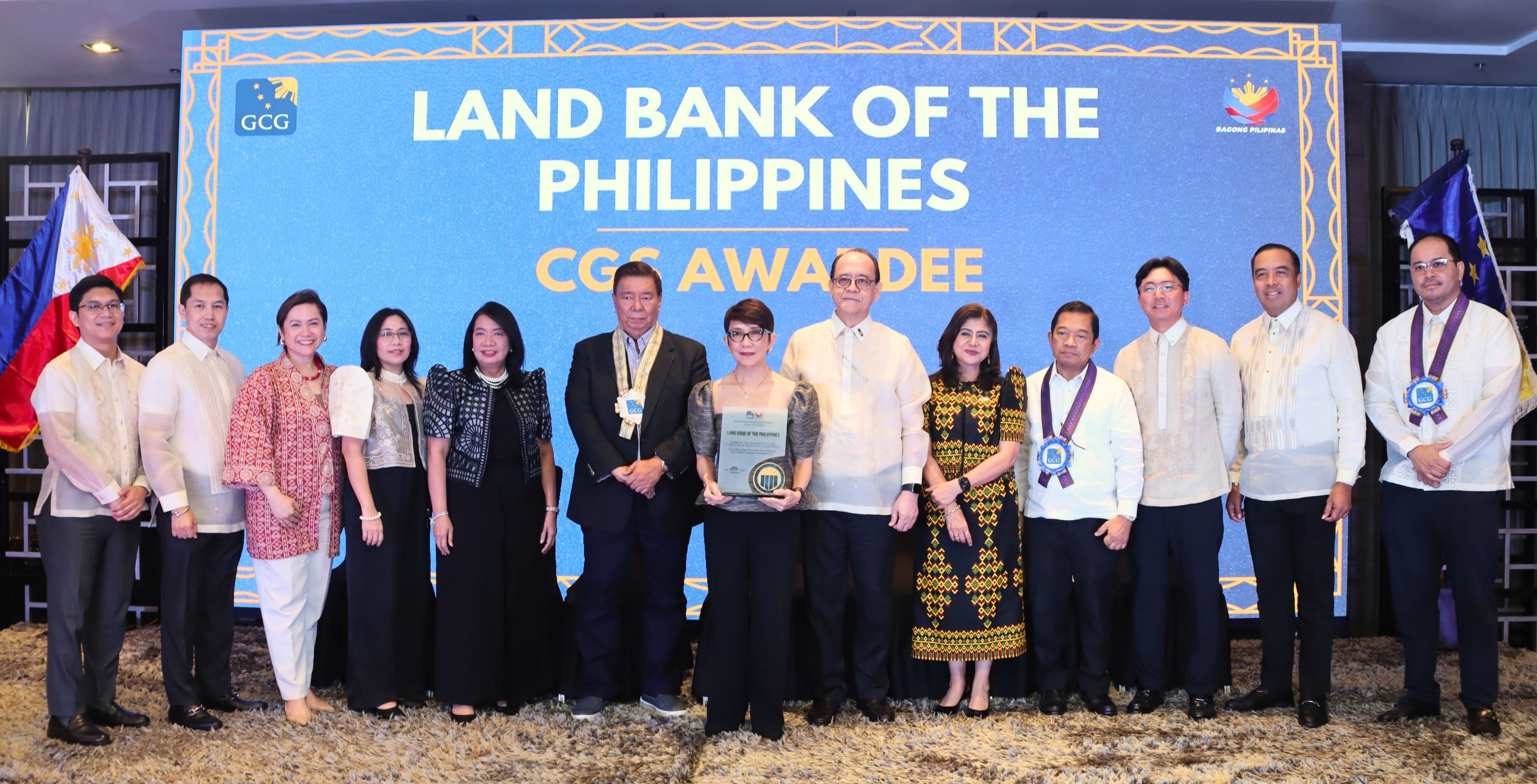GCG Chairperson Atty. Marius P. Corpus (6th from the right) and GCG Commissioner Atty. Geraldine Marie B. Berberabe-Martinez (5th from the right) present the awards to LANDBANK, along with guest speaker former Senate President Franklin M. Drilon (8th from the right), principal author of Republic Act No. 10149 (GOCC Governance Act of 2011), and Finance Undersecretary Rolando G. Tungpalan (4th from the right). LANDBANK President and CEO Lynette V. Ortiz (7th from the right) leads the LANDBANK delegation in accepting the accolades at the 2025 GCG Awards Ceremony, held on 01 December 2025 in Paranaque City. LANDBANK was recognized as one of the top awardees at the 2025 Governance Commission for Government-Owned and Controlled Corporations (GCG) Awards Ceremony, held on December 1, 2025, at the Sequoia Hotel in Parañaque City. The Bank earned distinct accolades under both the Performance Evaluation System (PES) and the Corporate Governance Scorecard (CGS), underscoring its steadfast commitment to exemplary governance and outstanding public service. The PES appraises the accomplishments of GOCCs based on rigorous performance criteria, while the CGS benchmarks governance initiatives against international best practices. The event was led by GCG Chairperson Atty. Marius P. Corpus and Commissioner Atty. Geraldine Marie B. Berberabe-Martinez, together with Finance Undersecretary Rolando G. Tungpalan and former Senate President Franklin M. Drilon, principal author of Republic Act No. 10149, otherwise known as the GOCC Governance Act of 2011, as the keynote speaker. Excellence across the LANDBANK group LANDBANK’s culture of excellence extends to its subsidiaries, with LBP Leasing and Finance Corporation (LLFC) named also a Governance Scorecard awardee, while LANDBANK Countryside Development Foundation, Inc. (LCDFI) was recognized as a PES awardee. “The recognition we have received at the 2025 GCG Awards is a clear reflection of the deeply embedded culture of integrity, accountability, and performance within LANDBANK. This honor reinforces our commitment to upholding the highest standards of governance as we continue to pursue our mission of serving the nation,” said LANDBANK President and CEO Lynette V. Ortiz. (Left photo) President and CEO Ortiz received the award for the LANDBANK Countryside Development Foundation Inc. (LCDFI), joined by Executive Vice President Leila C. Martin (2nd from left). (Right photo) LBP Leasing and Finance Corporation (LLFC) President and CEO Michael P. Arañas (7th from the right) accepts the award on behalf of LLFC. LANDBANK’s established legacy of governance excellence translates into tangible national benefits, as demonstrated by its consistent record-setting dividend remittances. After remitting ₱32.119 billion in 2024, the Bank has surpassed its own benchmark by declaring ₱33.5 billion in dividends to the National Government this year, supporting priority development projects. From pioneering sustainable finance to empowering communities and exemplifying corporate conduct, LANDBANK continues to set the standard for public sector excellence, reinforcing its role as a reliable partner in driving inclusive and sustainable progress for all Filipinos. ABOUT LANDBANK LANDBANK is the largest development financial institution in the Philippines promoting financial inclusion, digital transformation, and sustainable national development. Present in all 82 provinces in the country, the Bank is committed to provide accessible and responsive financial solutions to empower Filipinos from countryside to countrywide.